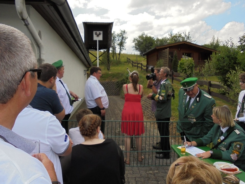 Die am nächsten Tag feierliche Krönungszeremonie in Hardt Hanfgarten war für alle Beteiligte ein besonderes Ereignis. Er konnte sich bei einem spannenden Bundesprinzenschiessen um 14:00 Uhr auf dem Schiessstand in Hardt Hanfgarten gegen 5 Anwärter und Anwärterinnen durchsetzen. Nach fast 2 Stunden und 257 Schuss Kleinkalibermunition war der Wettkampf entschieden. Nicht nur das Wetter spielte mit auch konnte Kevin endlich den Vogel aus den Kasten holen (letztes Jahr in Bernberg hatte er noch das Nachsehen). Update Mai 2020: Durch die Coronakrise verlängert sich die Regentschaft der Beiden um ein weiteres Jahr, da alle Schützenfeste, einschließlich das Bundesschützenfest, nicht stattfinden konnten / abgesagt worden. |