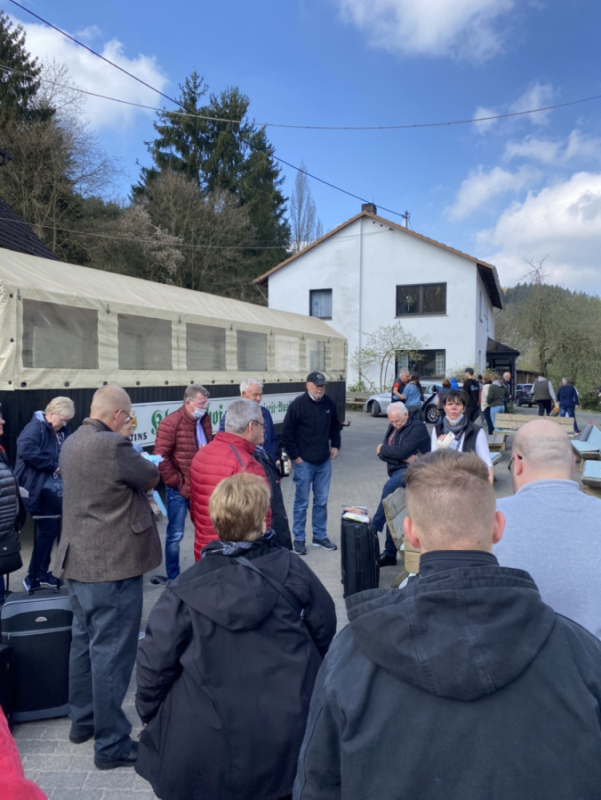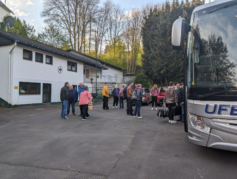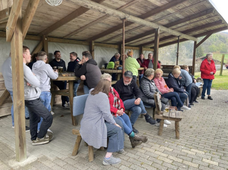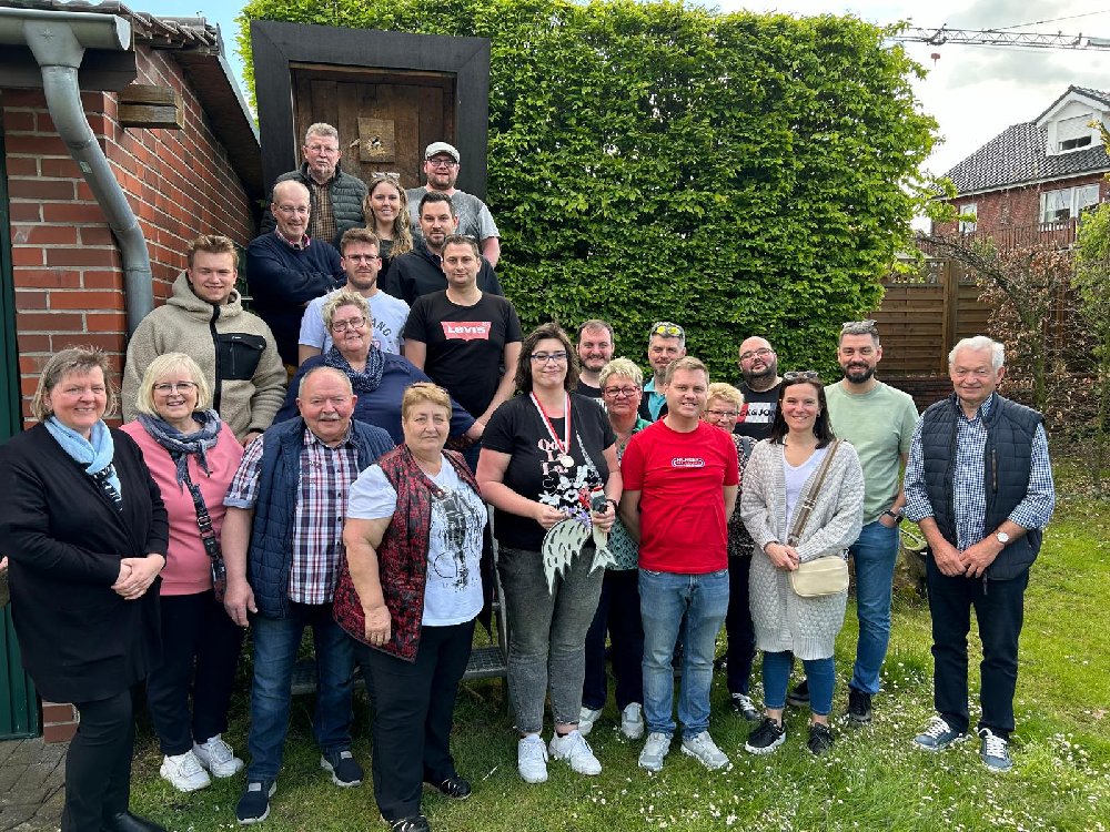 Vom Samstag den 23.04.2022 bis zum Sonntag, den 24.04.2022 fand endlich die Hoftour der Aggeraler Schützengilde statt. Corona hatte zuvor die Tour schon zweimal ins Wasser fallen lassen. König Achim und Königin Sandra Tump fuhren mit ihrem Gefolge für zwei Tage ins schöne Sauerland. Am Hotel Klaukenhof angekommen startete das abwechslungsreiche Programm. Erster Programmhöhepunkt war die Planwagenfahrt durch die Kitzelfichten auf Westfalens wohl längstem Planwagen (16 Meter lang) mit Stukenbuffet auf der Lümmelwiese (Fleischwurst, Pfefferbeißer, Käsewürfel, Brötchen). Nachmittags ging es für alle zum Vogelschießen (Original Sauerländer Schützenfest). Königsvogelschießen auf Krone, Zepter, Apfel und den Schützenvogel mit Ordensverleihung. Dabei zeigte Karin Schwerdter keine Nerven, holte den Königsvogel runter und wurde zur Hofkönigin geehrt. Anschließend ging es zur Grill- und Hüttenparty an der Scheune. (Nackensteak, Backmettbrötchen, Würstchen, Hähnchenbrust, Pellkartoffeln mit Kräuterquark, Salate, Saucen und Baguette) Am Abend dann der Schützenball mit Tanz, wo ein Alleinunterhalter für Stimmung sorgte und zum Mitsingen einlud. Nach einem reichhaltigen Frühstück am Sonntag stand noch der Sauerländer Dreikampf auf dem Programm. Alles was der Sauerländer am besten kann: Sägen, Nageln und Zielen. Aber jede Tour geht einmal vorbei und so ging am Sonntagmittag heimwärts. Horrido