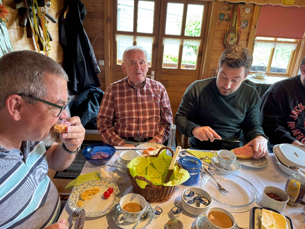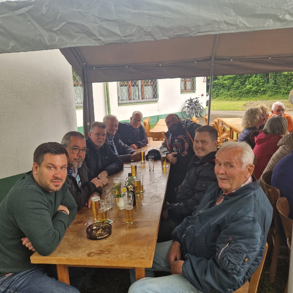 Der gemütliche Ausklang des Tages fand bei leckeren Reibekuchen – frisch gebraten von Joachim Tump – sowie Würstchen und saftigen Steaks vom Grill statt. Die Stimmung war ausgelassen, das Wetter spielte mit – lediglich auf dem kurzen Weg zum Hohl wurde die Gruppe von einem kleinen Regenschauer überrascht, was die gute Laune jedoch keineswegs trübte.