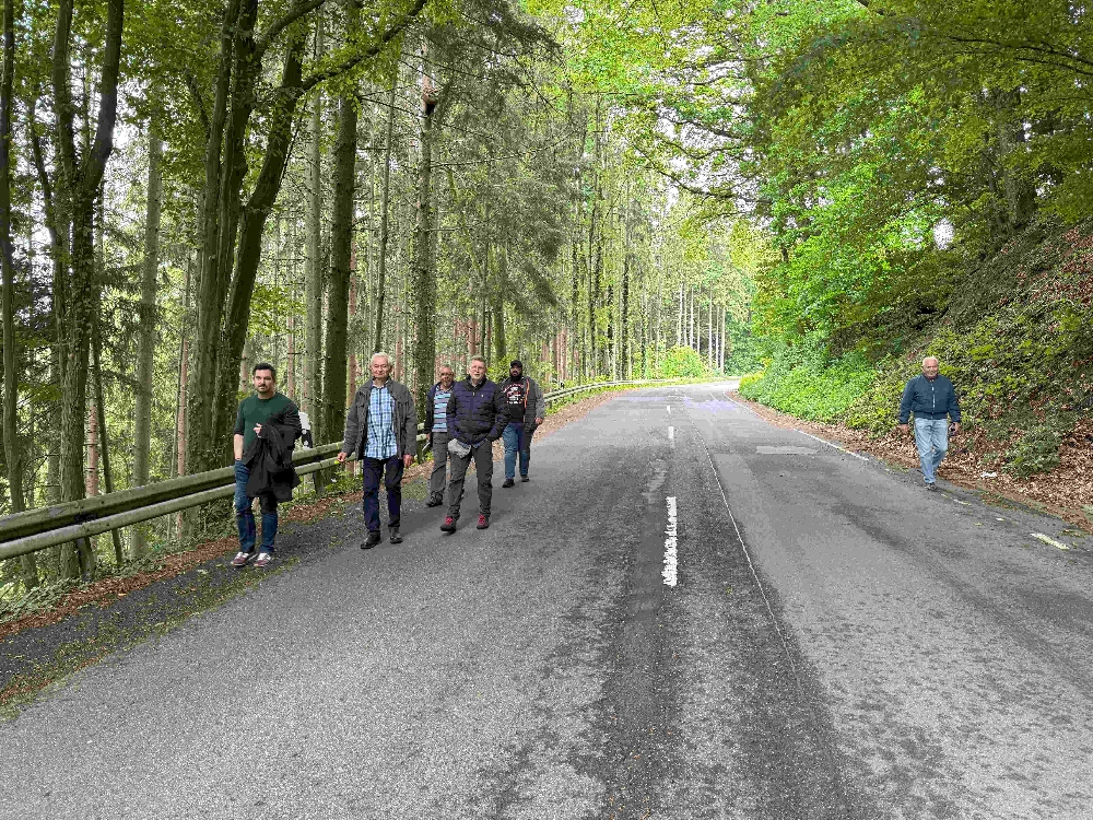 Gut gestärkt ging es zur ersten Station: der Genossenschaftskneipe im Hohl. Dort gönnte man sich eine kleine, aber feine Stärkung, bevor sich die Truppe zur Bushaltestelle aufmachte. Mit der Linie 310 fuhr man Richtung Ründeroth, wo am Busbahnhof der nächste Abschnitt der Wanderung begann.